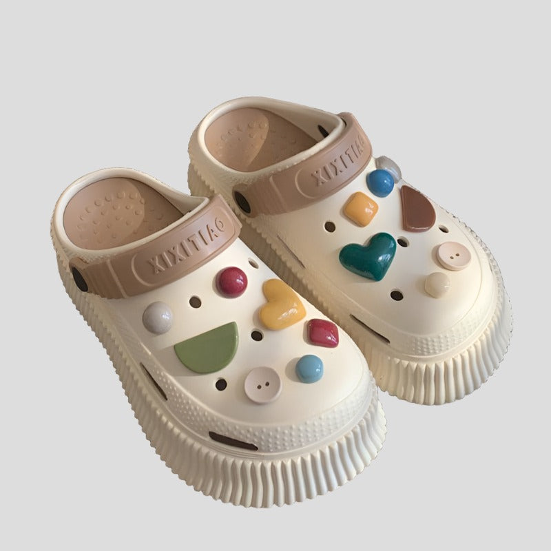 Genießen Sie Komfort und Stil mit unseren Clogs mit dicker Sohle und 5 cm umwickelter Zehenpartie. Diese Clogs verfügen über eine dicke Sohle, die Ihren Füßen hervorragende Polsterung und Halt bietet. Das 5 cm umwickelte Zehendesign verleiht Ihrem Look eine trendige Note. Damit sind sie perfekt für legere und elegantere Anlässe. Schlüpfen Sie hinein und genießen Sie den Komfort von leicht zu tragendem Schuhwerk mit einem modischen Touch. Ob Sie Besorgungen machen oder sich mit Freunden treffen, diese Clogs bieten Ihnen den ganzen Tag lang Komfort und Stil. Werten Sie Ihre Schuhkollektion mit unseren vielseitigen Clogs mit dicker Sohle und 5 cm umwickelter Zehenpartie auf.