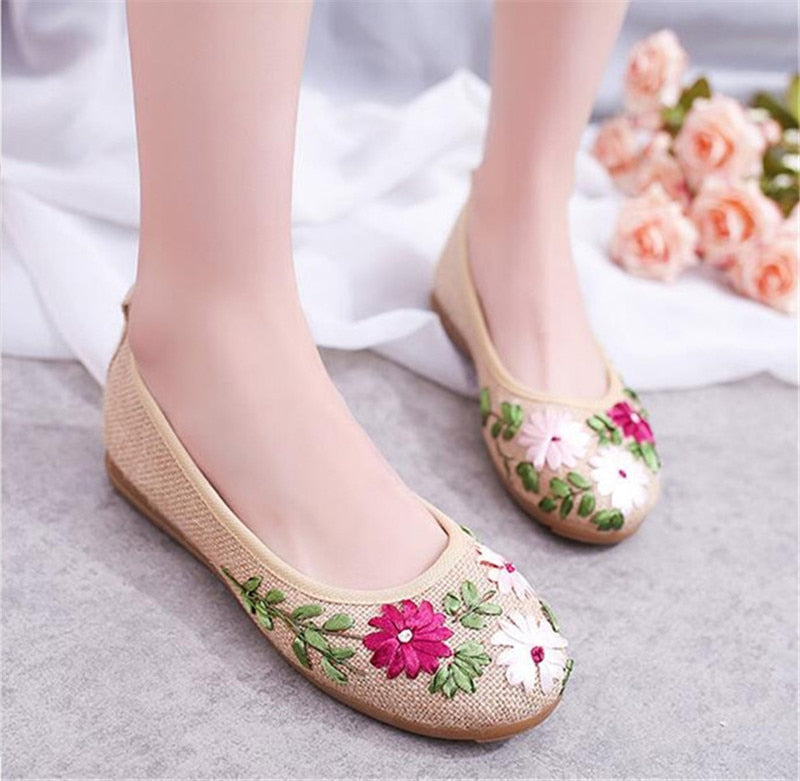 Lässige Ballerinas aus Baumwolle mit Stickerei