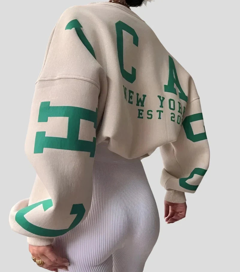 Bleiben Sie gemütlich und stilvoll mit unserem Chicago-Sweatshirt für Damen. Perfekt für die Herbst- und Wintersaison. Dieses Sweatshirt aus Polyester-Mischgewebe hat eine Standarddicke und ein nicht dehnbares Wollgewebe. Das gewährleistet sowohl Komfort als auch Haltbarkeit. Die lockere Passform und die überschnittenen Ärmel sorgen für einen entspannten Streetwear-Stil. Während das Buchstabenmuster einen trendigen Touch verleiht. Entworfen für Frauen im Alter von 18 bis 24 Jahren. Dieses Chicago-Sweatshirt hat lange Ärmel, einen Rundhalskragen und keine Kapuze. Damit ist es ideal für jeden Freizeitausflug. Mit einem Gewicht von 450 g ist dieses Chicago-Sweatshirt ein Muss für Ihre Garderobe.