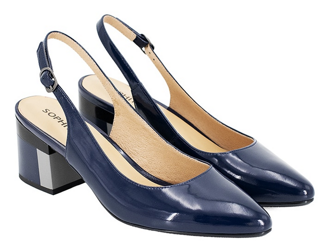 Klassische Sandalen aus Lackleder mit buntem Absatz