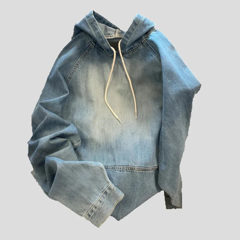Wir präsentieren unsere exklusiven Vintage-Denim-Kapuzenpullover mit großen Taschen und Raglanärmeln für Unisex. Hergestellt aus hochwertigem Denim. Dieser Pullover verfügt über ein einzigartiges Raglanärmel-Design und eine große Tasche für zusätzlichen Komfort und Stil. Genießen Sie mit diesem luxuriösen Stück die perfekte Mischung aus Komfort und Mode.
