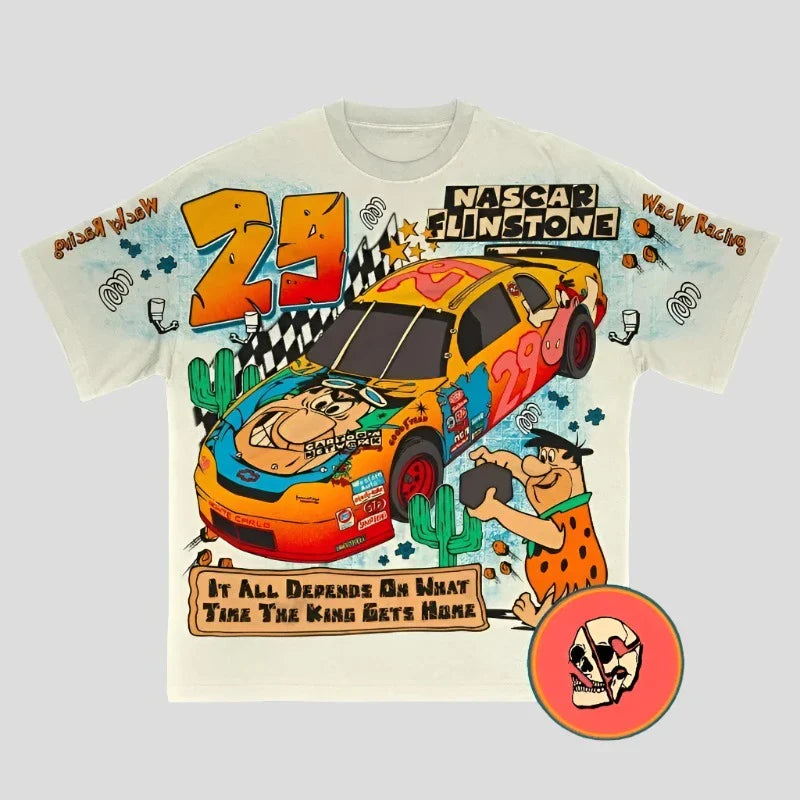 Flinston Cartoon Unisex Rennauto T-Shirt Casual Urban Streetwear