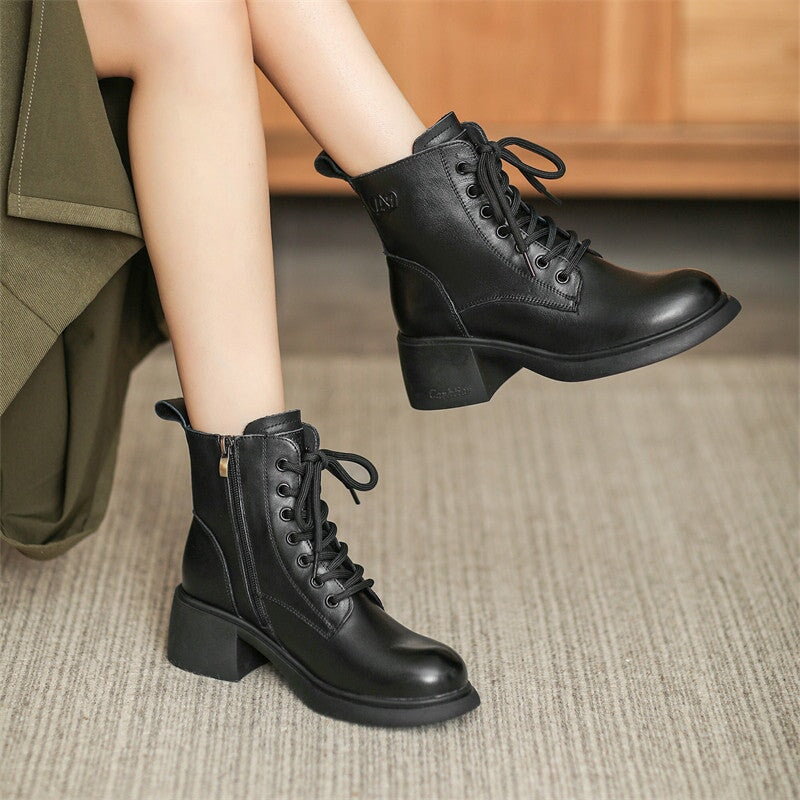 Design von Vreeo Studio. 60 mm Blockabsatz. Schnürverschluss vorne. Hoher Schaft. Runde Zehenpartie. Die perfekte Ergänzung für Ihre Garderobe. Weiches Rindsleder. Bequem und verschleißfest. Die Gummisohle ist hochelastisch. Weich. Rutschfest und verschleißfest.