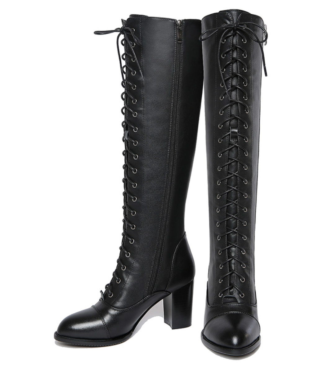 Hohe Stiefel aus echtem Leder mit Schnürung