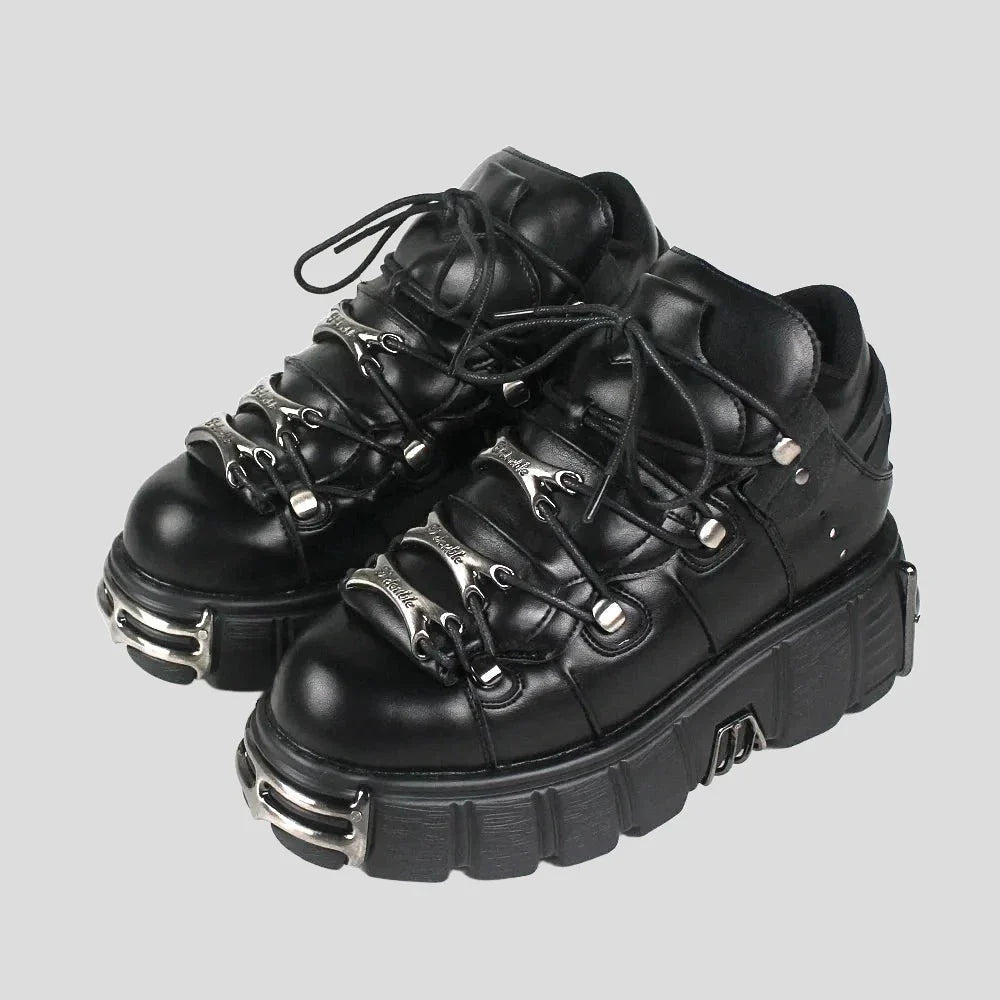 Wir präsentieren Gothic-Plateau-Sneaker für Damen – Edgy Style in klassischem Schwarz. Diese Gothic-Plateau-Sneaker verleihen Ihrer Garderobe einen mutigen Touch. Diese mit Liebe zum Detail gefertigten Sneaker verfügen über eine robuste Plateausohle, die Ihren Stil aufwertet und ganztägigen Komfort bietet. Das klassische schwarze Design dieser Gothic-Plateau-Sneaker sorgt dafür, dass sie mühelos zu jedem Outfit passen. Damit sind sie eine vielseitige Ergänzung Ihrer Schuhkollektion. Ideal für alle, die einen edgy und einzigartigen Look lieben. Diese Gothic-Plateau-Sneaker vereinen Mode und Funktionalität nahtlos. Zeigen Sie sich selbstbewusst und setzen Sie ein Statement mit diesen Must-have-Sneakern für Damen.