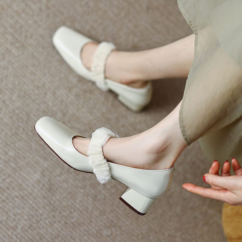 Klassische romantische Styles für Frühling, Sommer und Herbst. Passt perfekt zu allen Arten von Kleidung. Seidenverzierung . Quadratische Zehenpartie. Blockabsatzdesign. Details entscheiden über Erfolg oder Misserfolg.