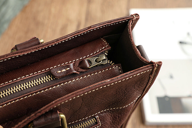 Handgemachte Business-Laptoptasche aus pflanzlich gegerbtem Leder