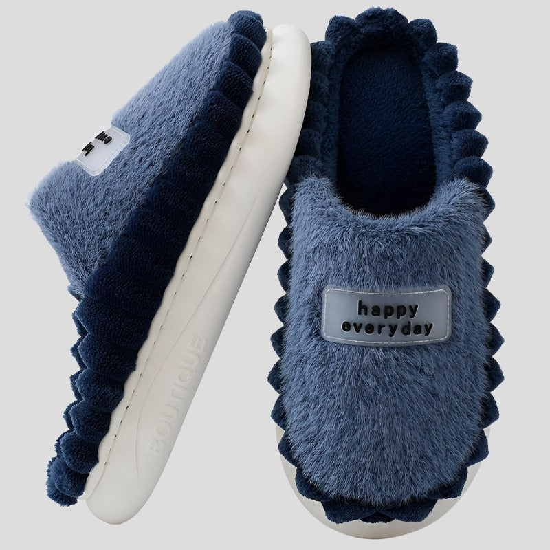 Die warmen Happy Everyday-Hausschuhe aus Baumwolle sind perfekt für den abenteuerlustigen Mann. Diese Hausschuhe aus warmer und weicher Baumwolle bieten ein bequemes und gemütliches Erlebnis. Ziehen Sie sie an und stellen Sie sich den Herausforderungen des Lebens. Einen Schritt nach dem anderen.