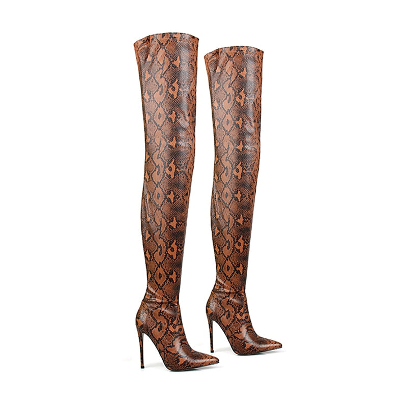 Hohe Stiefel mit dünnem Absatz und spitzer Spitze