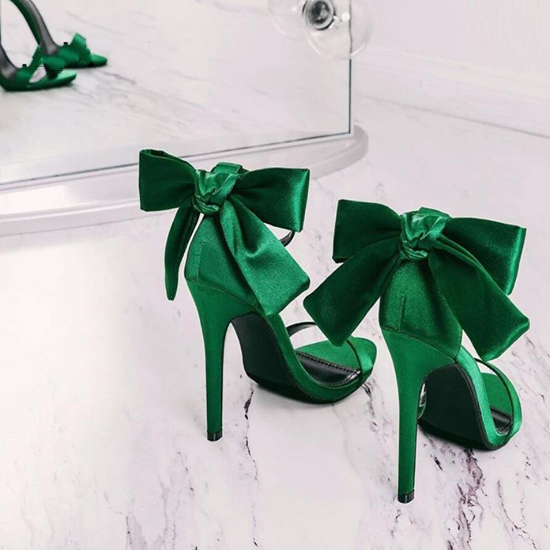 Hochhackige Sandalen mit Schmetterlingsknoten
