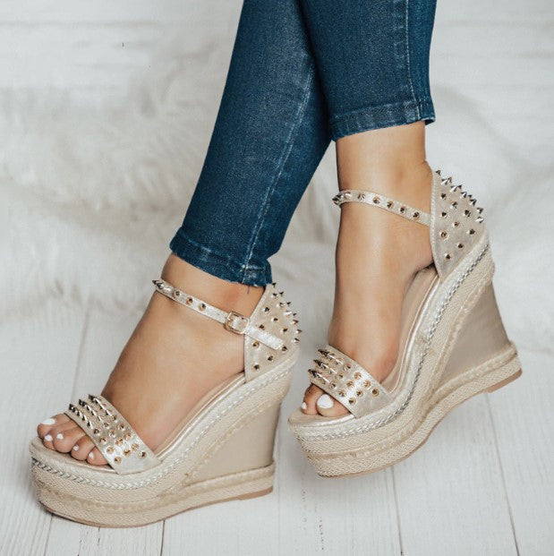 Hohe gewebte Plateau-Sandalen mit Nieten