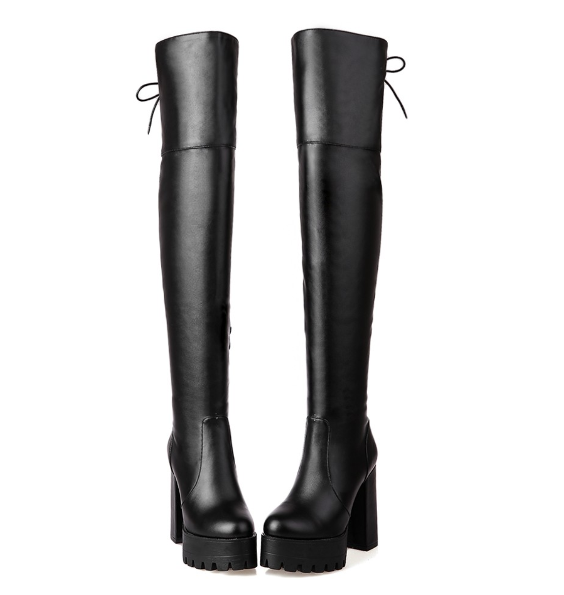 Hohe Stiefel mit Schnürung und quadratischem Absatz