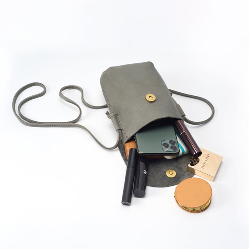 Hergestellt aus pflanzlich gegerbtem Rindsleder. Das Leder ist weich und fühlt sich angenehm an. Mit klarer und natürlicher Textur. Eine mit Nieten besetzte Handytasche im Vintage-Stil, die sich jederzeit und überall leicht mitnehmen lässt. Ikonische Vreeo-Logos für hohe Qualität.