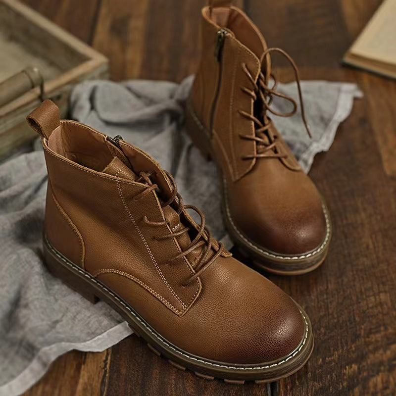 Kurze Stiefel im Retro-Stil im britischen Stil aus hochwertiger erster Schicht Rindsleder mit Retro-Ton. Für ein angenehmes Tragegefühl.