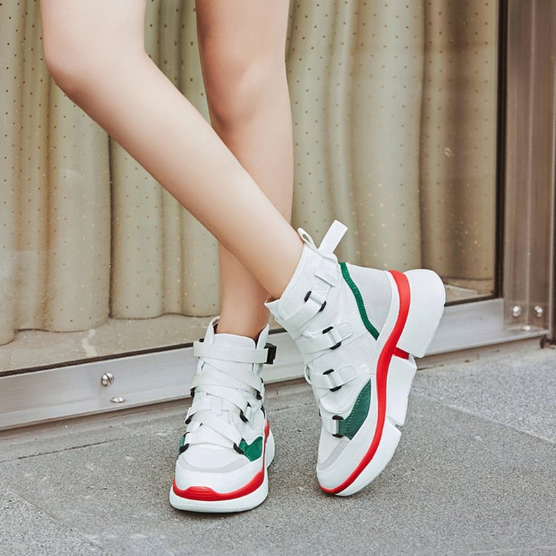 Knöchel-Sneakers aus PU-Leder mit Schnallen
