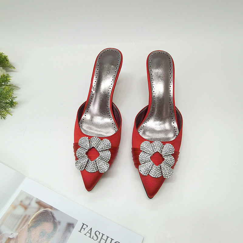 Sandalen mit Blumen- und Strassverzierung - Rot