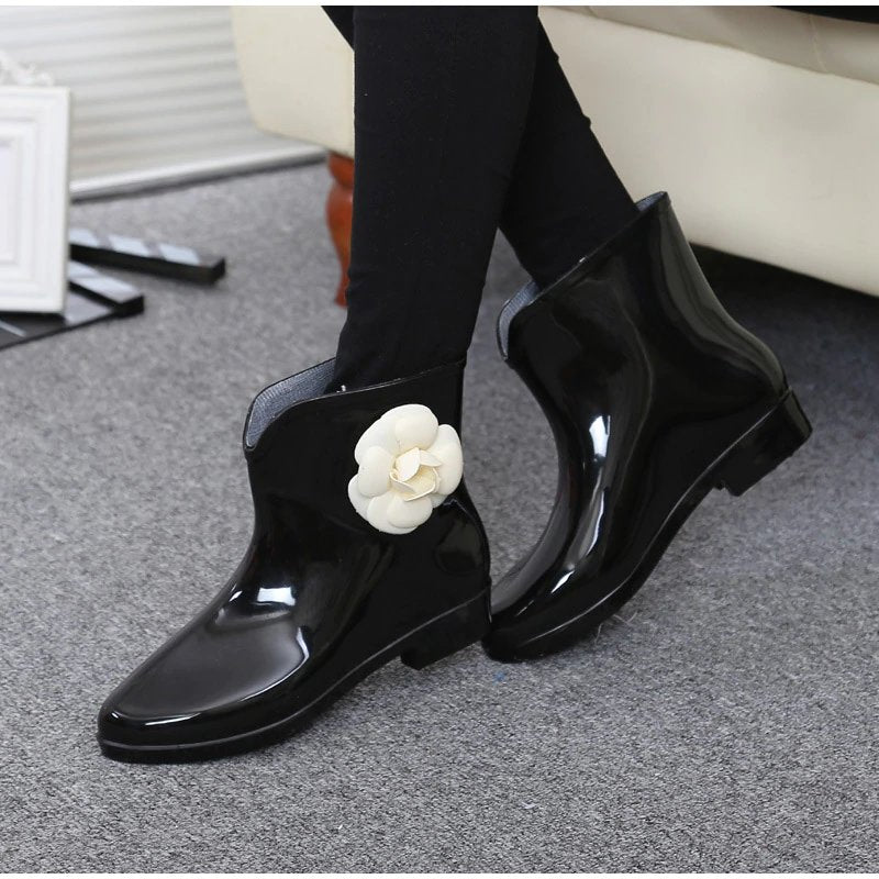 Gummistiefeletten mit dekorativer Blume/Fliege