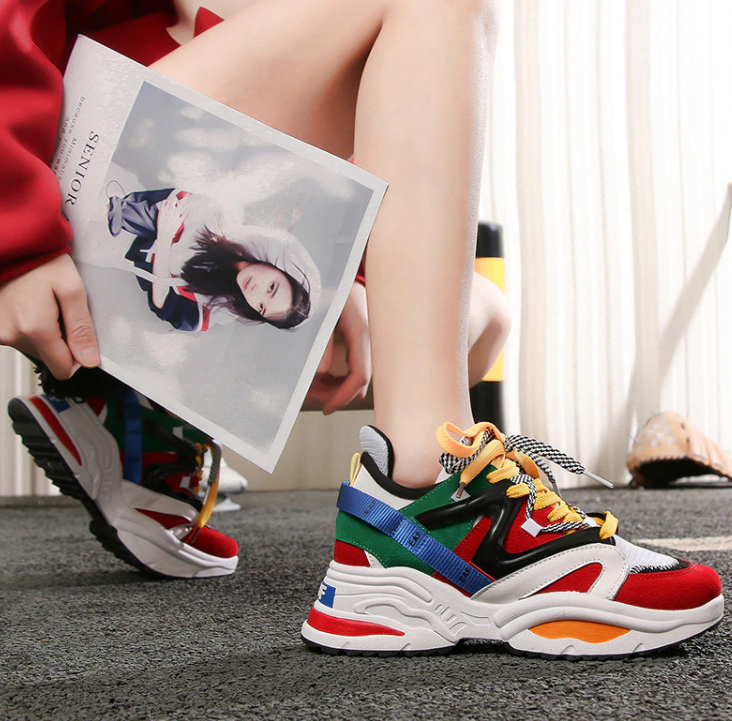 Mehrfarbige Sneakers mit hoher Sohle