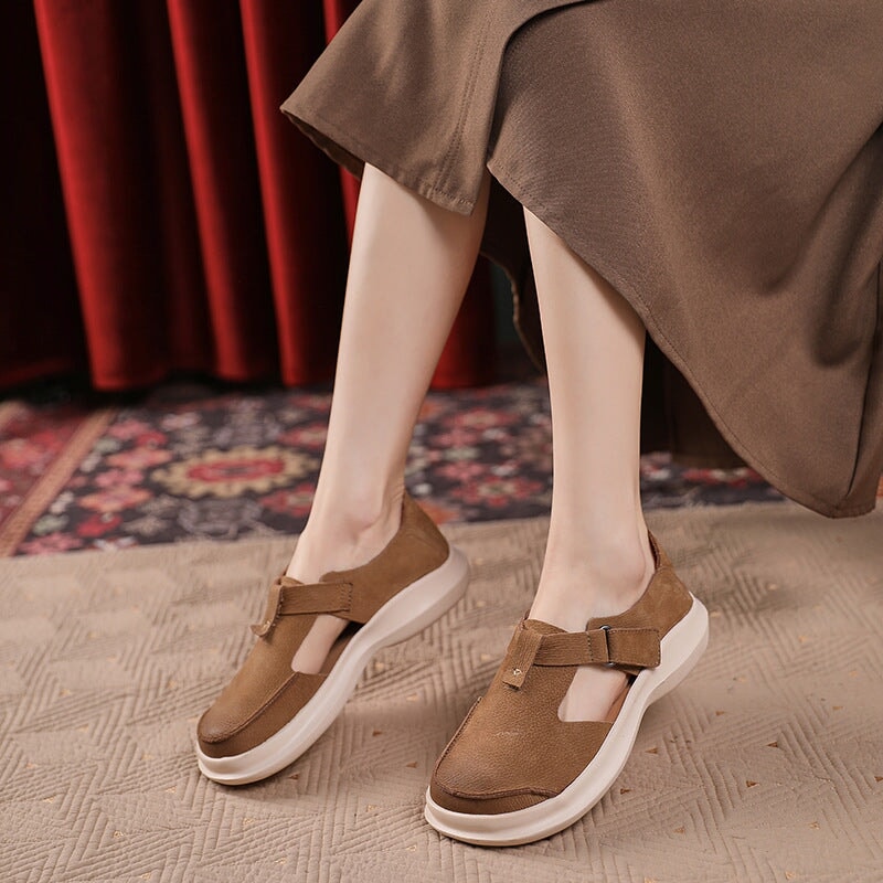 Einfach, aber elegant. Retro und zart. Durchdachtes 40-mm-Plateaudesign. Obermaterial und Futter aus atmungsaktivem Kalbsleder.
