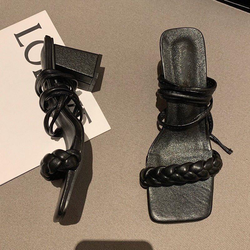 Sandalen mit eckiger Zehenpartie und hohem Absatz zum Schnüren