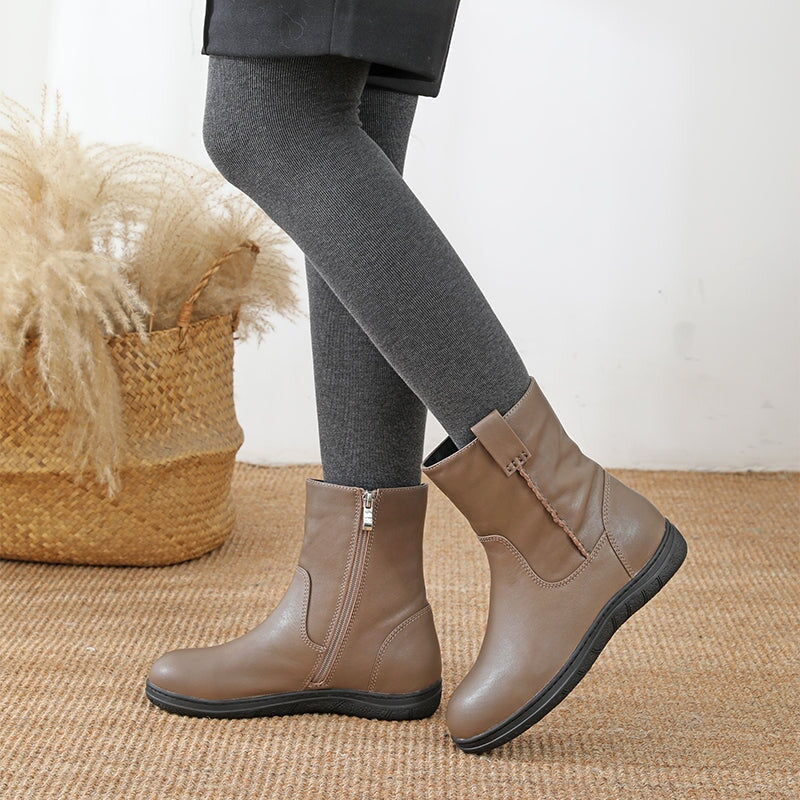 Bequemes, warmes, kurzes Plüschfutter. Seitlicher Reißverschluss. Obermaterial und Innensohle bestehen aus Oberleder. Flexibel und bequem. Die Sohle ist elastisch. Weich und leicht. Bequem. Sicher und rutschfest. Tragen Sie Ihre einzigartige Schönheit. Diese Schuhe wurden von Miss Pan hergestellt. Sie hat irgendwo ein exklusives Logo.