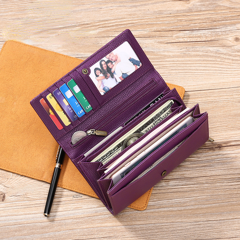 Cartera larga de piel de vacuno con RFID