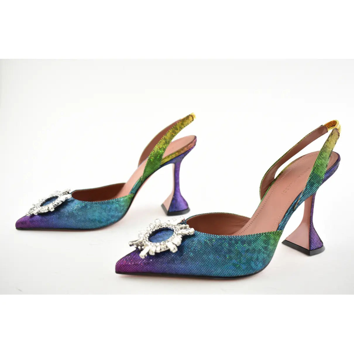 Los orígenes de Oriente Medio y Europa se hacen evidentes en los diseños de estos extravagantes tacones. El modelo destalonado está adornado con un brillante broche de cristal de Swarovski, que va desde la punta hasta el espectacular tacón esculpido. Úsalos para añadir un toque de color a un vestido monocromático.