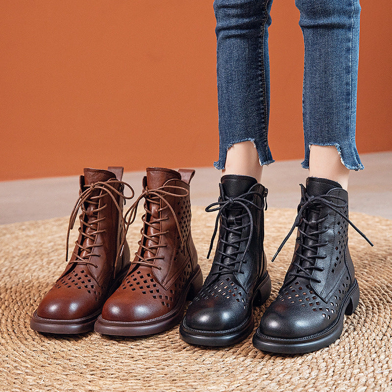 La parte superior y la plantilla son de cuero. Suela de goma. Diseño original. Punta redonda. Cremallera lateral. Corte artesanal. Luce tu belleza única.