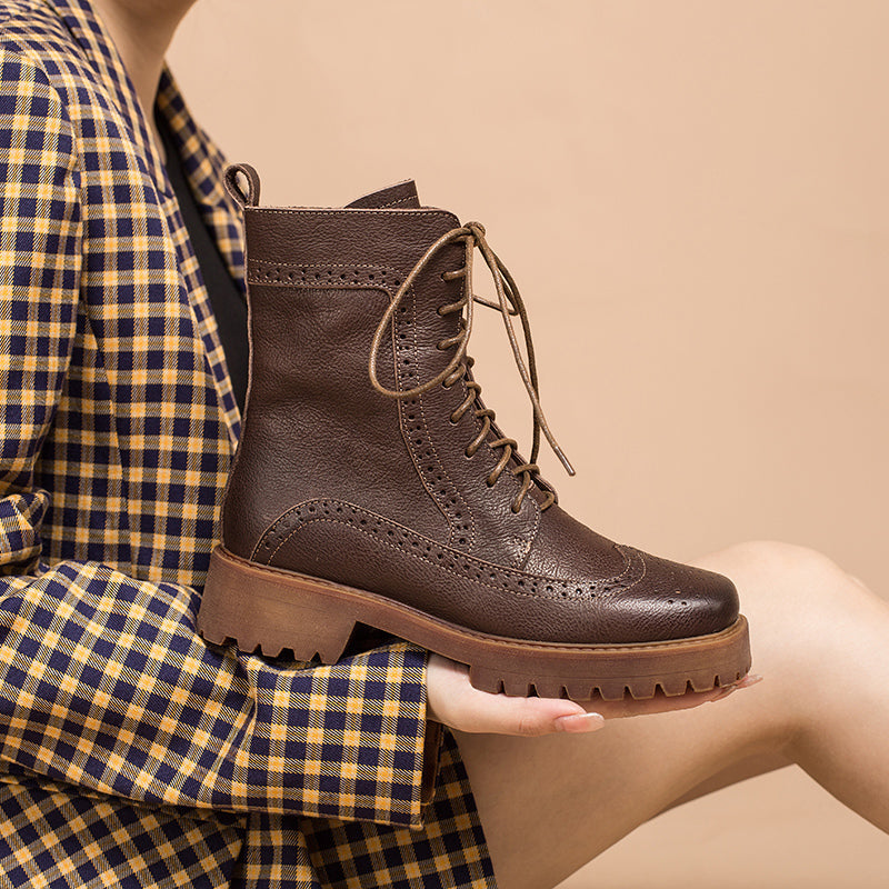 Diseño de punta redonda. Se adapta a la mayoría de las formas de pie. Cuero de vaca superior suave. Cómodo y resistente al desgaste. Patrón decorativo de punta de ala.