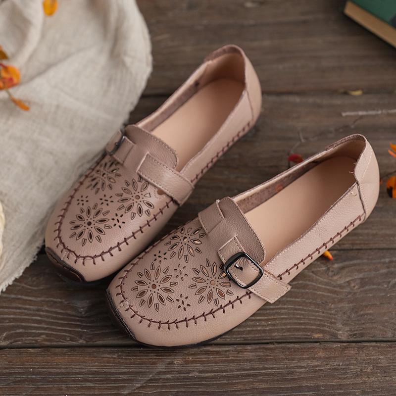 La parte superior y la plantilla están hechas de cuero de primera capa. Suaves, flexibles y cómodas. Cortadas a mano. Lucen tu belleza única.