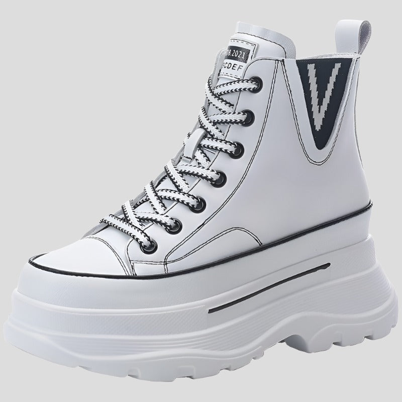Mejora tu estilo con estas zapatillas de plataforma de 7 cm de altura. Diseñadas para la mujer vanguardista, estas zapatillas cuentan con una parte superior y caña de cuero vacuno genuino, ofreciendo durabilidad y un aspecto premium. La punta redonda y el tacón con aumento de altura brindan comodidad y un toque extra de estilo. Perfectas para primavera y otoño.