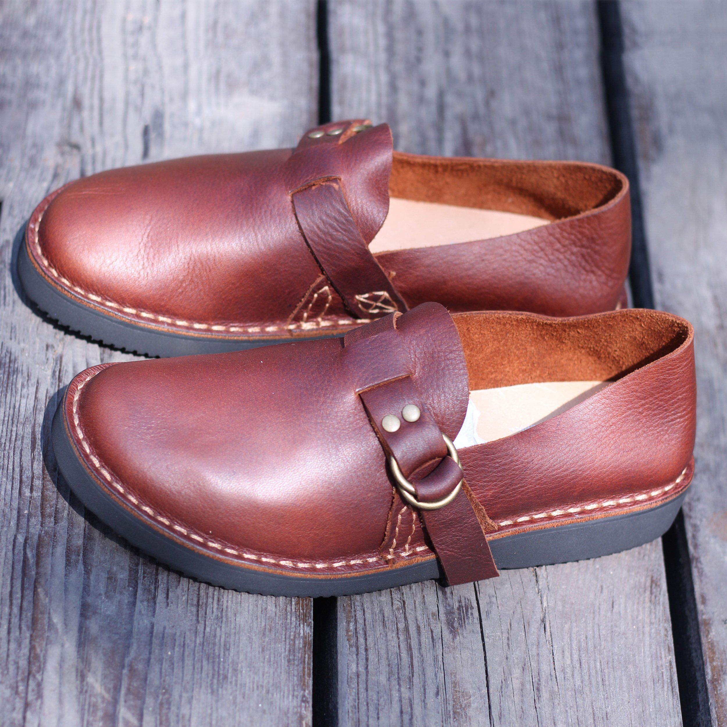 El estilo inglés medio es un zapato plano estilo monje que define la comodidad. La parte superior de cuero flor transpirable y la plantilla de cuero se estiran y se adaptan a tus pies para un ajuste personalizado con el uso.