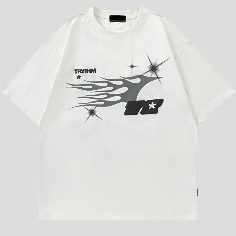 Lleva tu estilo al siguiente nivel con esta atrevida camiseta oversize con estampado gráfico. Con su diseño en verde azulado y negro, ¡pondrá la aventura a tu alcance! Marca la diferencia y destaca dondequiera que vayas. ¡Prepárate para romper con el statu quo!