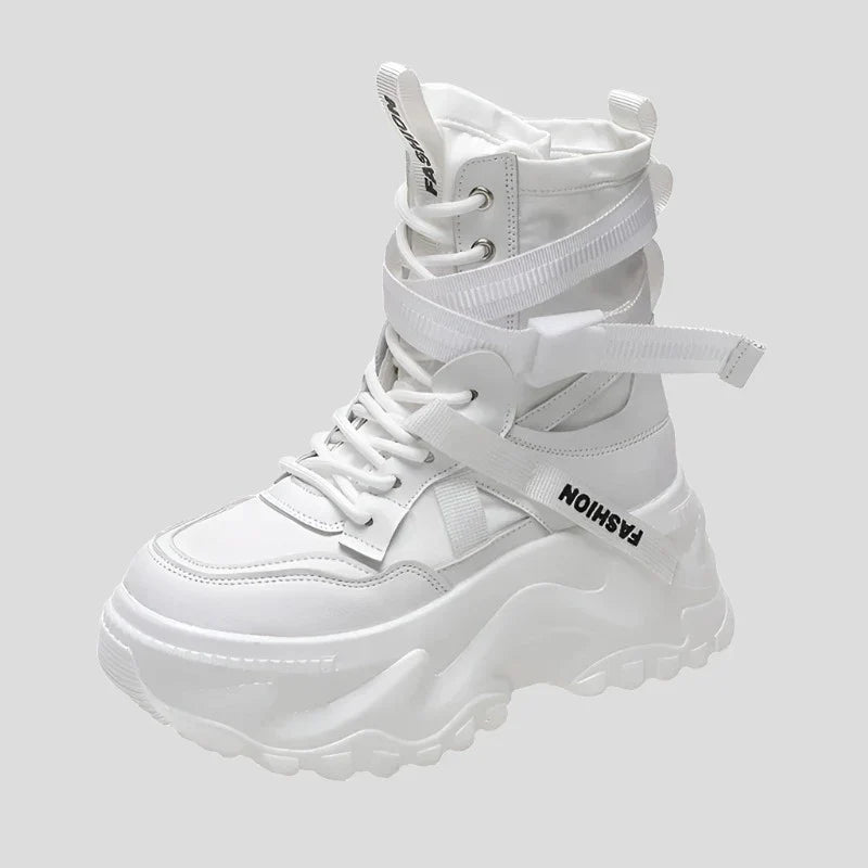 Estas elegantes botas de plataforma con cordones para moto cuentan con un sistema de cordones fiable para un ajuste seguro. Con una suela gruesa de plataforma, brindan estabilidad y soporte en cada paso. Perfectas para looks casuales o formales.