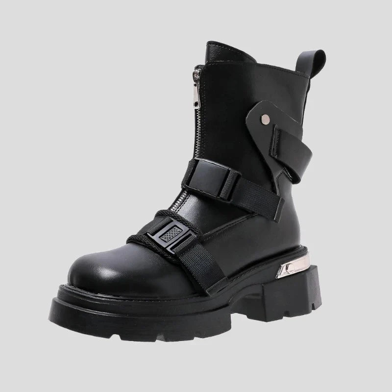 Mejora tu estilo y destaca entre la multitud con nuestros botines de diseñador con plataforma gruesa. El moderno detalle de hebilla de cinturón le da un toque de elegancia vanguardista, mientras que la plataforma gruesa proporciona mayor altura y comodidad. ¡Camina con confianza y marca la diferencia con estas botas imprescindibles!