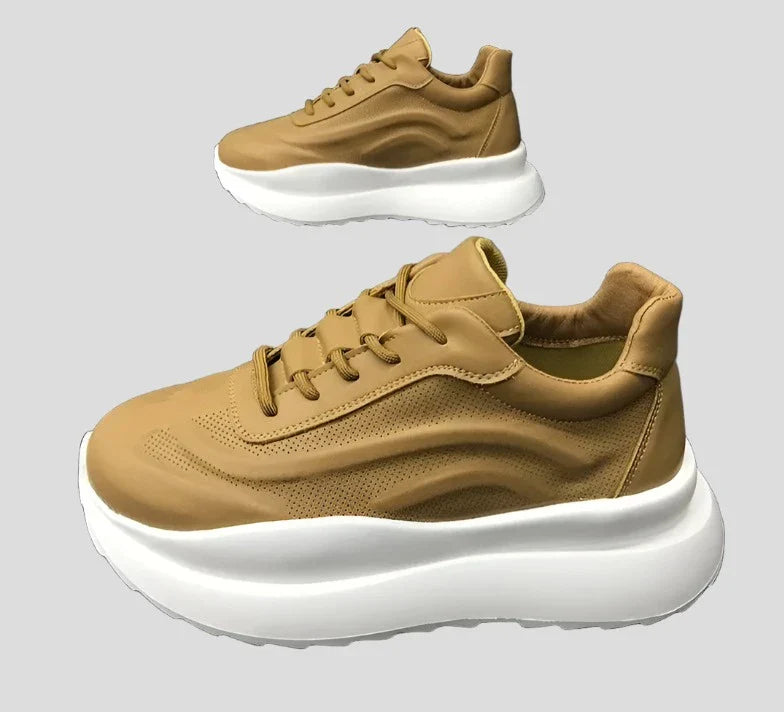 Mejora tu estilo con nuestras zapatillas de plataforma transpirables de piel de vacuno para hombre. Fabricadas con piel de vacuno de alta calidad, estas zapatillas de plataforma no solo ofrecen comodidad y transpirabilidad, sino que también añaden un toque de estilo a cualquier look. El diseño de la plataforma te da una mayor altura y el material resistente garantiza una larga duración. Renueva tu colección de calzado hoy mismo con estas modernas zapatillas de plataforma. Tallas más grandes de lo habitual. Consulta la información de tallas de esta tienda.