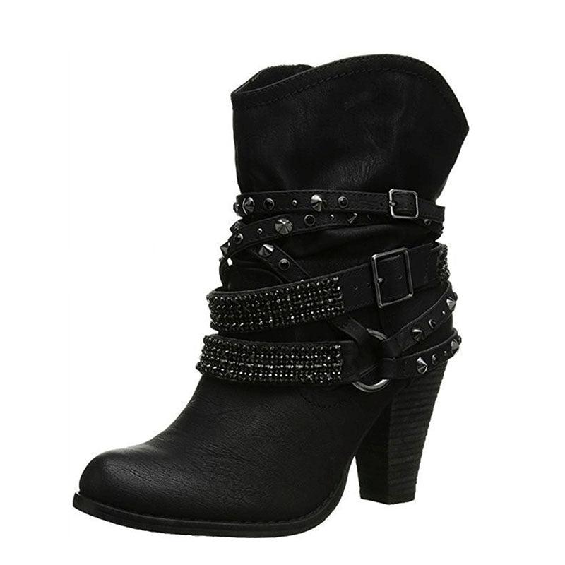 Botines de tacón alto de piel sintética con hebillas decorativas