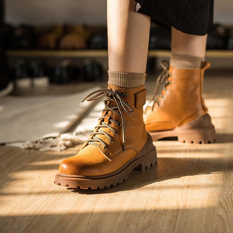 Estilo de moda, punta redonda, cordones, diseño grueso. Se adapta a la mayoría de las formas de pie. Piel de becerro suave. Cómodo y resistente al desgaste. Cordones redondos encerados personalizados.