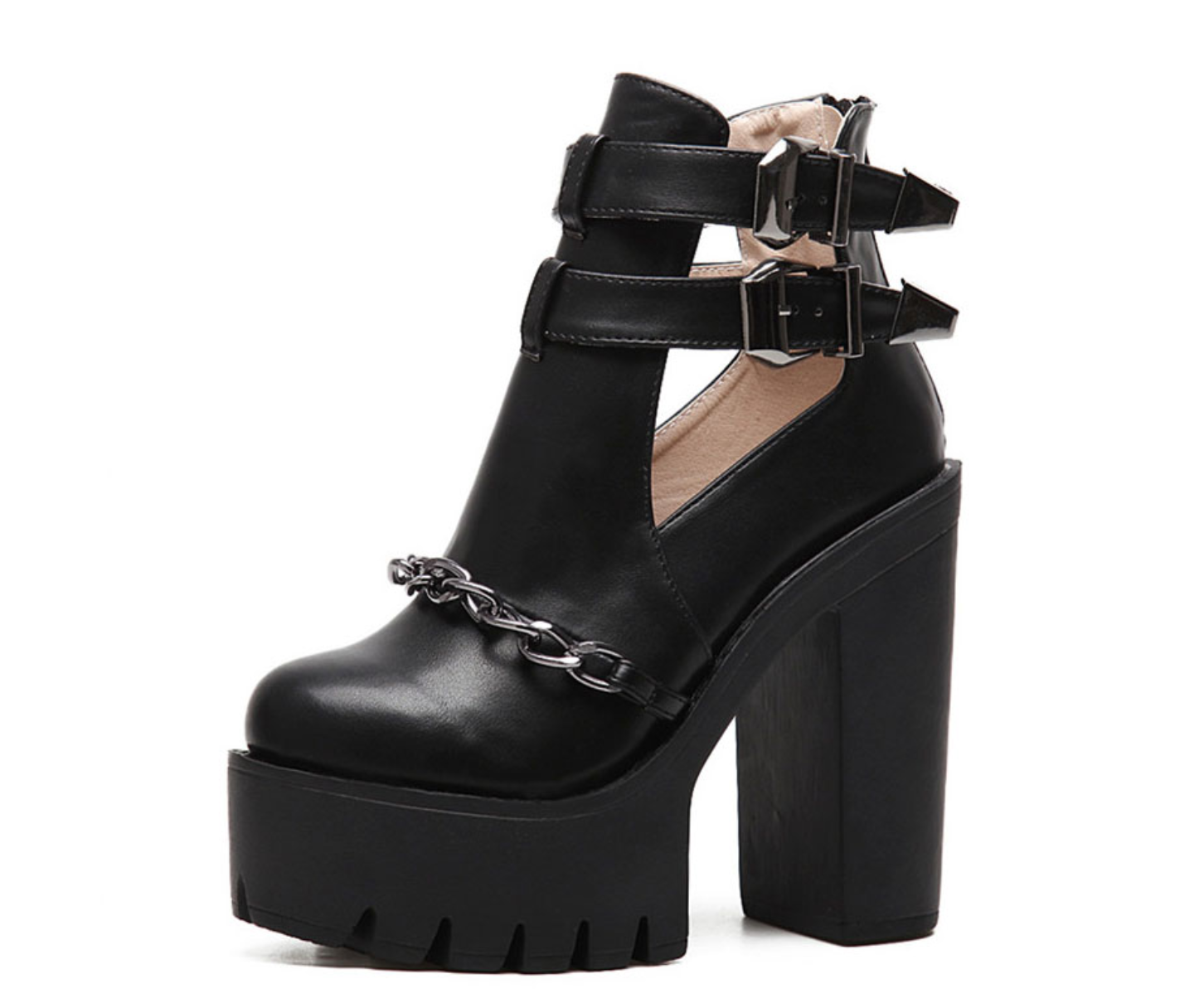 • Elemento de moda: Tacón cuadrado. Plataforma. Punta redonda. Cremallera.
