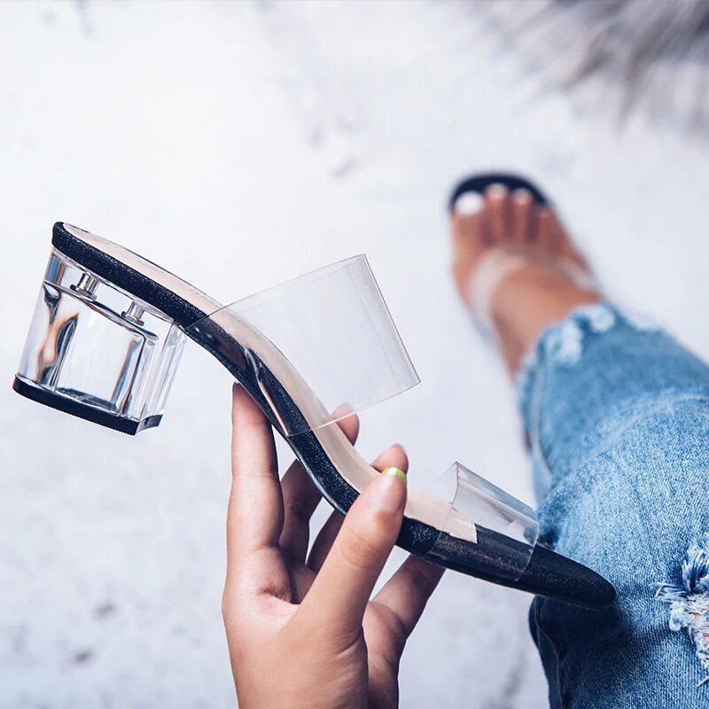 Chanclas de vinilo de tacón bajo de PVC transparente