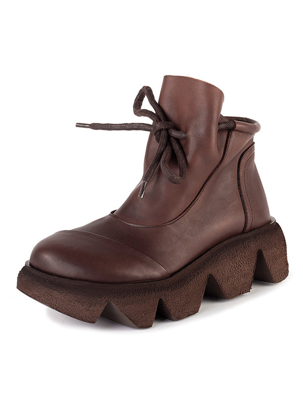 Botas retro informales con cordones, punta redonda y suela gruesa, de color liso