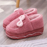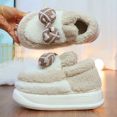 Pantuflas de invierno con plataforma de piel y lazo para mujer