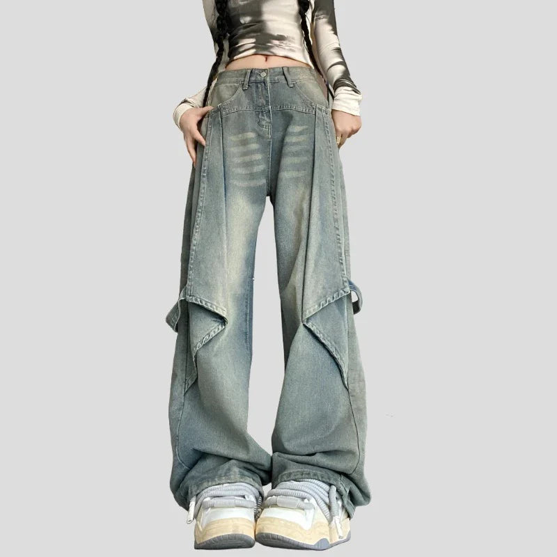 Our Baggy Blue Jeans features an inspired designer print. offering a similar aesthetic without being an original design.