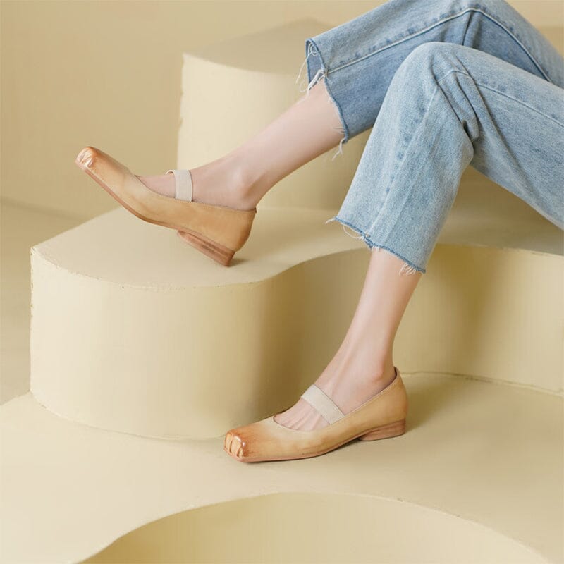 They have Square toes. Cow Leather insole inlaid sponge Soft and comfortable .