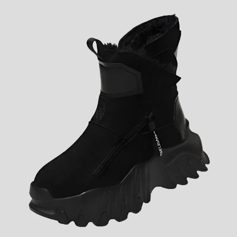 Elevate your look with these plush suede platform ankle boots. With a sleek black finish. these boots ooze sophistication. But don't be fooled. they will keep you comfy with their plush interior �perfect for making statements both in style and in comfort!
