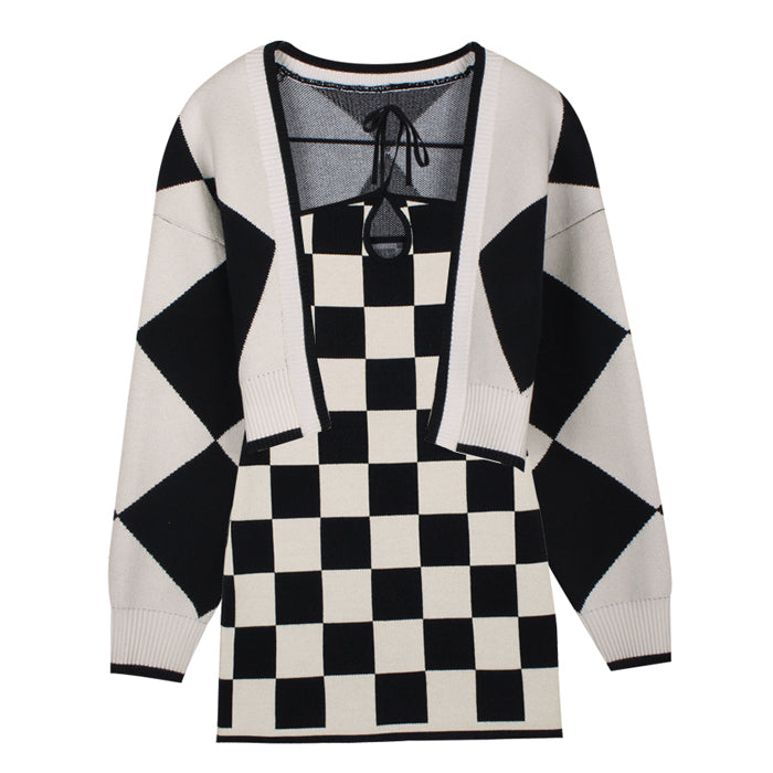 L: Bust: 88cm/ 34.6 in. Length (Dress): 78cm/ 30.7 in. Length (Cardigan): 37cm/ 14.6 in