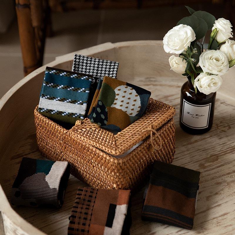 Cotton thickened middle tube socks feel close to the skin. breathable and hygroscopic. and give more warmth in winter. AB asymmetric socks. publicize personality. release uninhibited. young exclusive.
