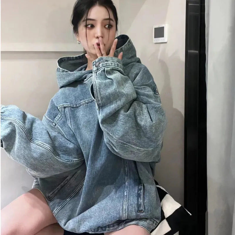 This Y2K Women's Loose Denim Hoodies Sweatshirt features a classic style with modern flair. Its loose fit and denim fabrication combine comfort with fashion - perfect for everyday wear. This hoodie is sure to become a wardrobe staple.