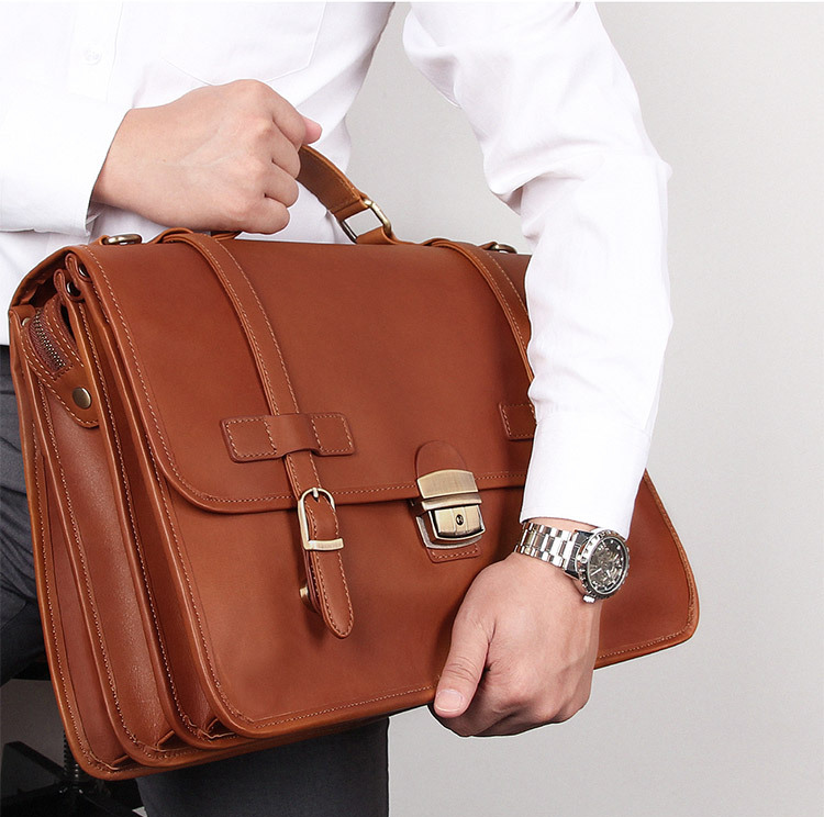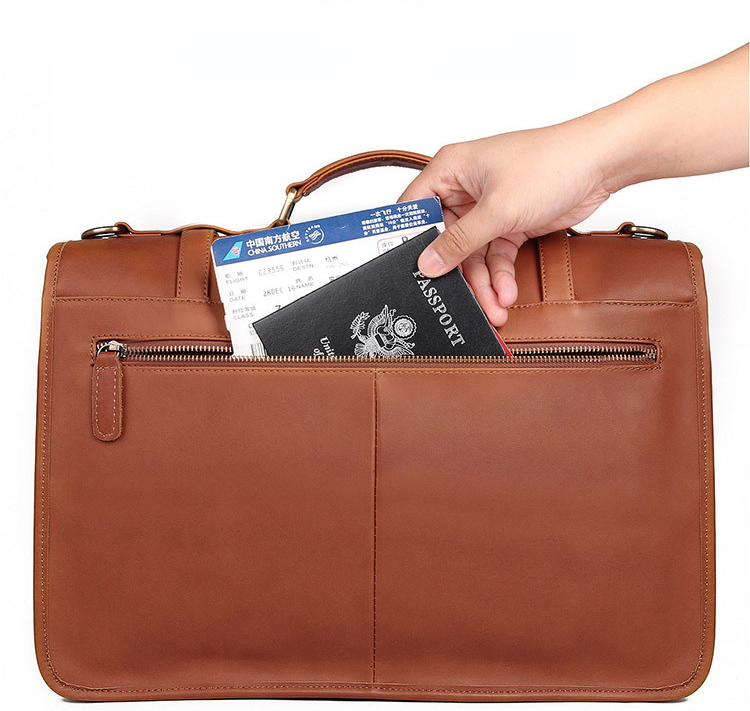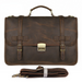 The executive business briefcase is constructed of premium full grain vintage cowhide leather and features a flap design Main compartment has two divided section with padded computer area. notbooks area and other small pockets for phone. cards. pens and more. Also features an external zippered pocket in back and quick-access buckle flap closure.