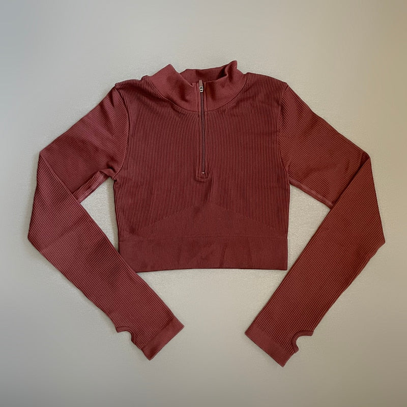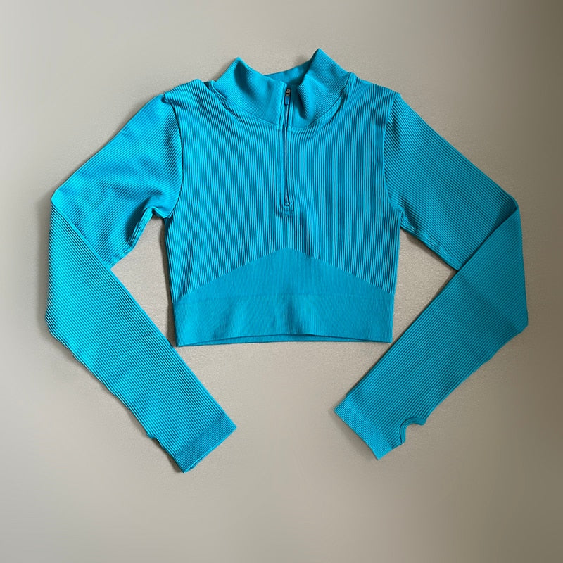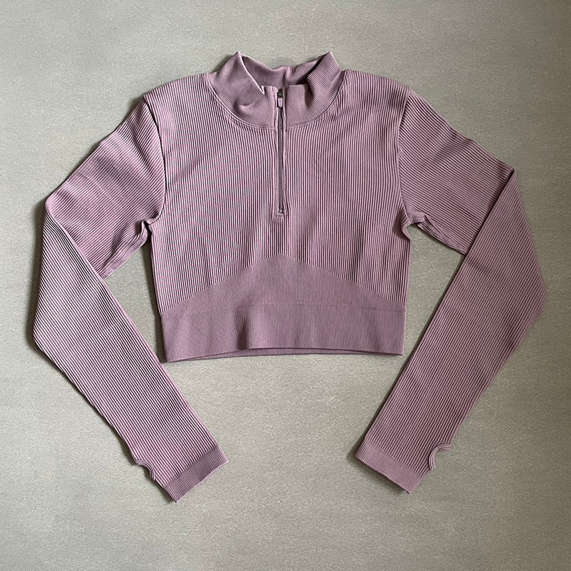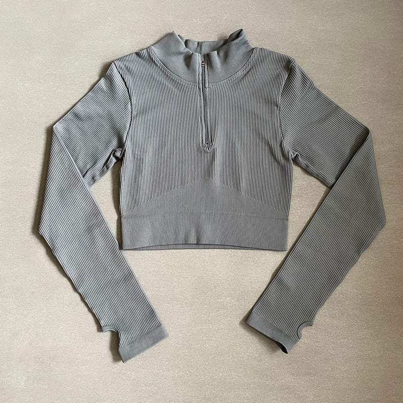 This long sleeve crop top is tight cut to the body. cute and sexy. Design in seamless knit fabric. endure comfortable ABD supportive fits. It features a half-zip neck and thumb holes for a sporty finish. The crop top strengthen with a ribbed under the band. Giving everything you need to succeed in your next workout.